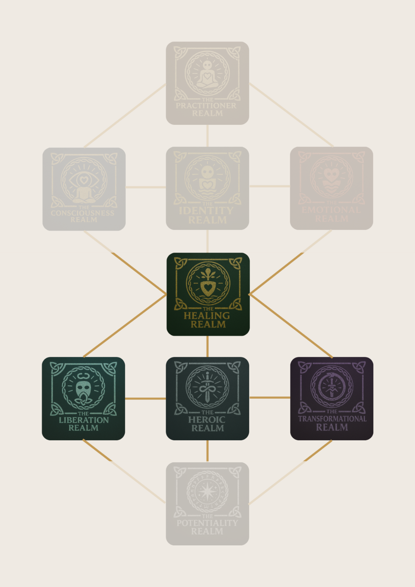 The Practitioner Realms – Healing, Liberation, Heroic and Transformational – a full stack of tools built on the Nine Realms architecture, with permission to use them in your client work.